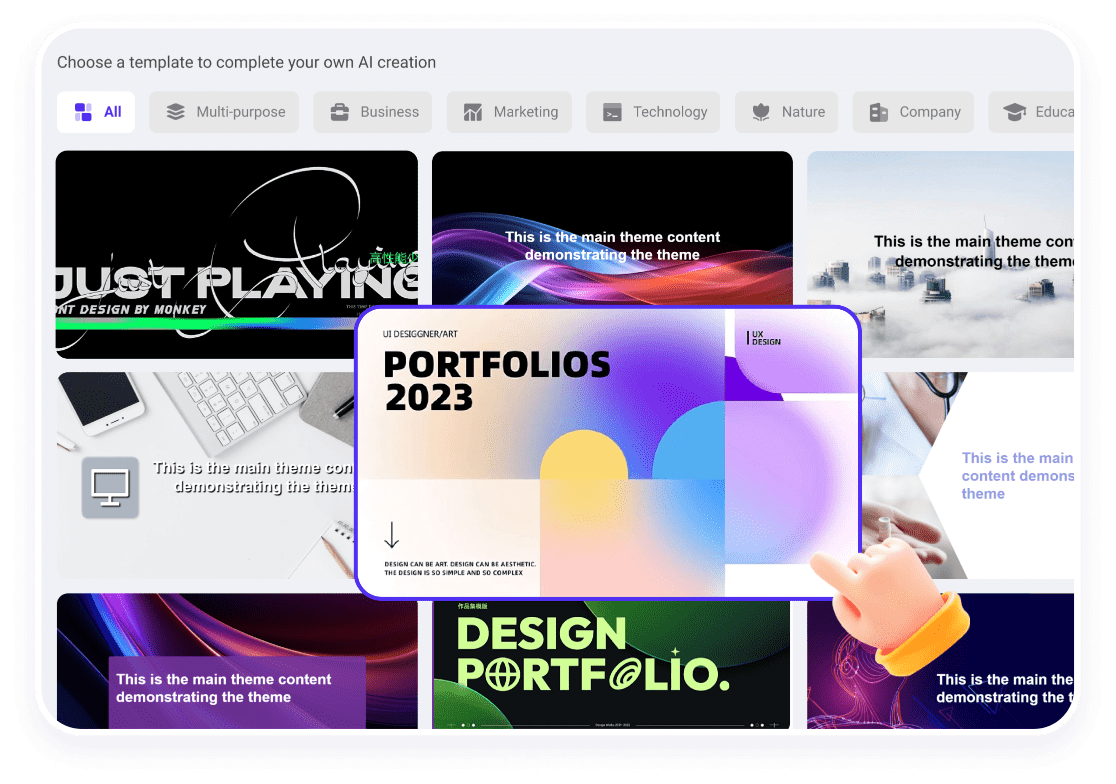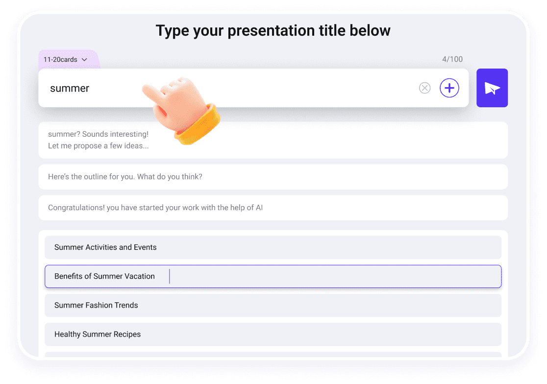 Type a short prompt or upload any file to instantly turn it into a presentation.
